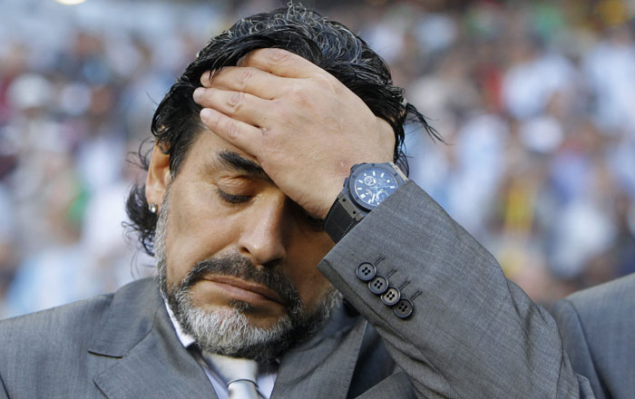 Leia mais Maradona fica desesperado com eliminação, invade o gramado e cheira as marcações do campoJúlio Cesar tenta reconhecer título de ter recebido a maior quantidade de gols em Copa