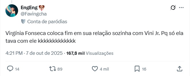 Leia mais O que a internet está falando sobre o “término” de Virgínia e Vini Jr