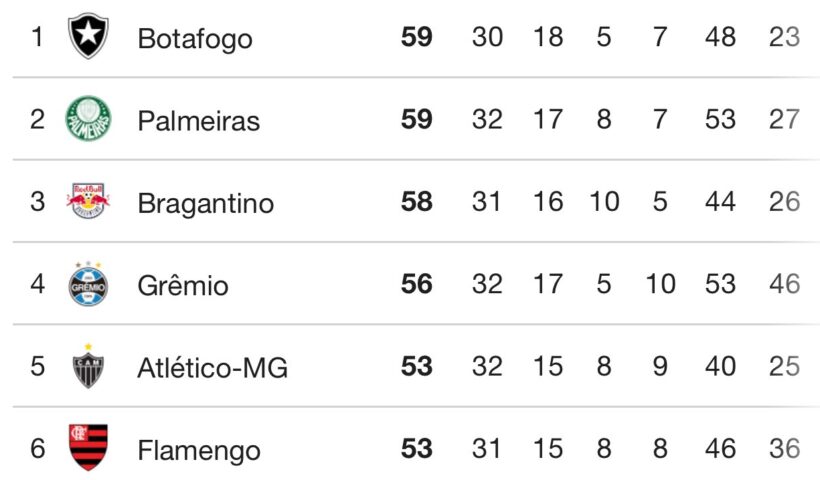 Leia mais Falta um Tiquinho para o Botafogo perder o Brasileirão, diz estudoOs memes da possível perca do título do Botafogo no Brasileirão